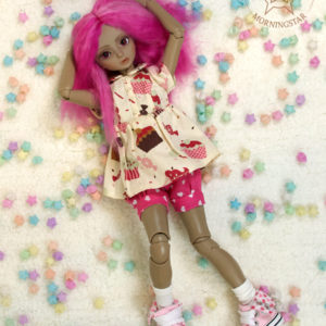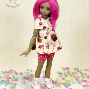 She’s Morningstar’s first doll and original design, hand-made in polyurethane resin. This is the Tan skin option, but she’s also available in White and Peach options.